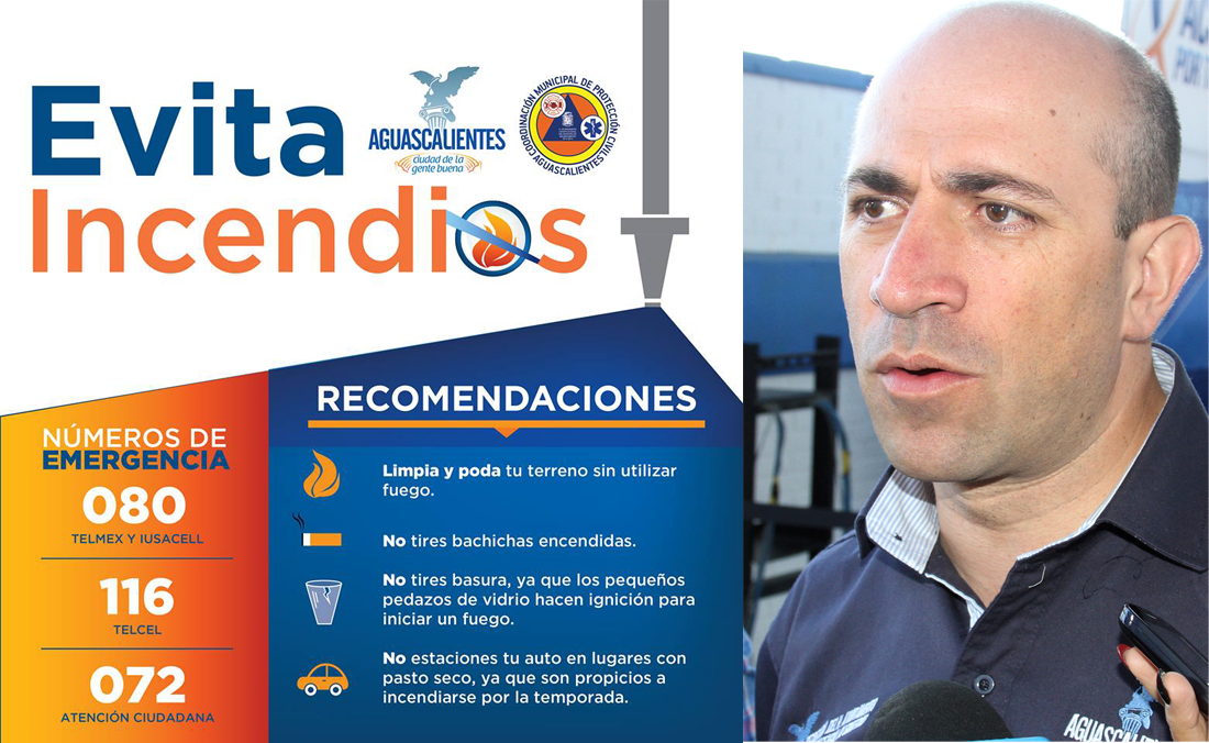 El titular de la Secretaría del H. Ayuntamiento y Director General de Gobierno, Manuel Cortina Reynoso, puntualizó que el Municipio de Aguascalientes implementa una campaña informativa para crear conciencia en la población y evitar se generen incendios que afecten el patrimonio de la ciudadaní...