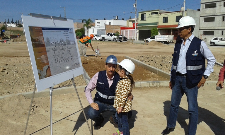 El alcalde de Aguascalientes supervisa obras de construcción de un parque vecinal