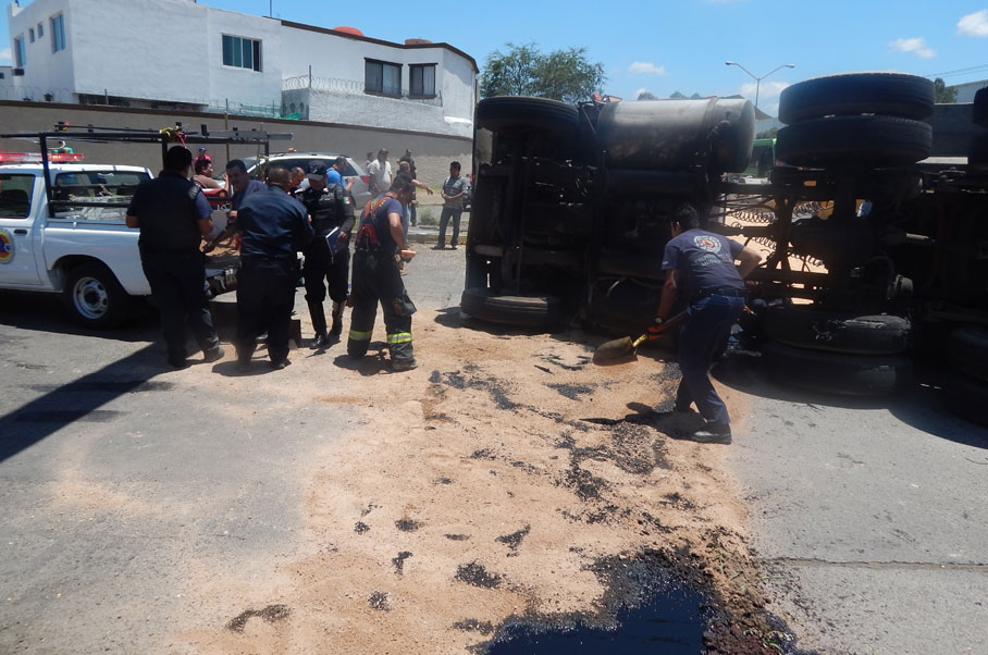 Un trailer terminó volcado y con la carga que llevaba en la caja regada por toda la cinta asfáltica, al sufrir un desperfecto mecánico cuando circulaba por Héroe de Nacozari y Siglo XXI al sur de la ciudad.