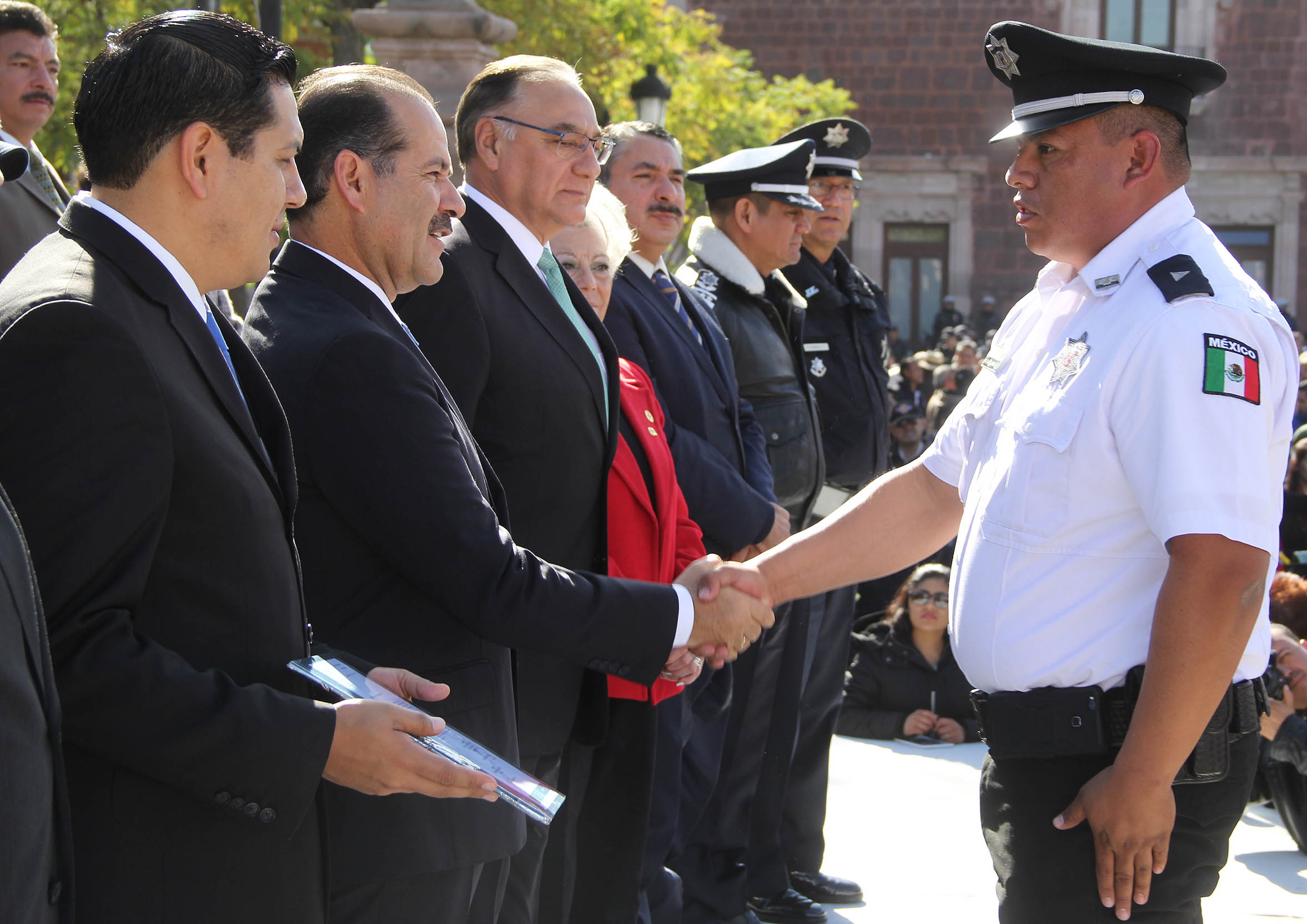 El Gobernador de Aguascalientes, Martín Orozco Sandoval entregó nombramientos a los nuevos titulares de Seguridad Pública de los municipios del interior, así como equipamiento y patrullas con una inversión superior a los 31 millones de pesos a igual núme...
