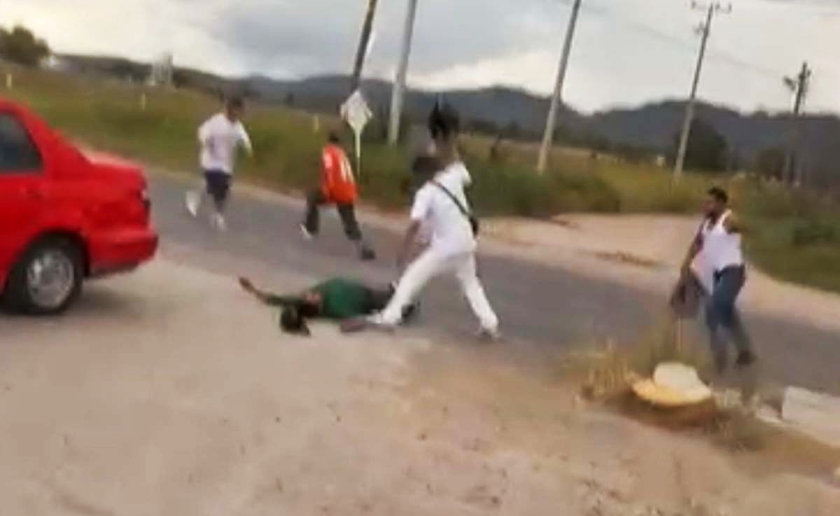 Un video de apenas 27 segundos grabado desde la ventanilla de una camioneta, documenta el momento en el que un grupo de cobardes, golpean de manera criminal a un trabajador de una estación de gas que ya está inconsciente y en el suelo.Las autoras del video gritan una y otra vez para que...