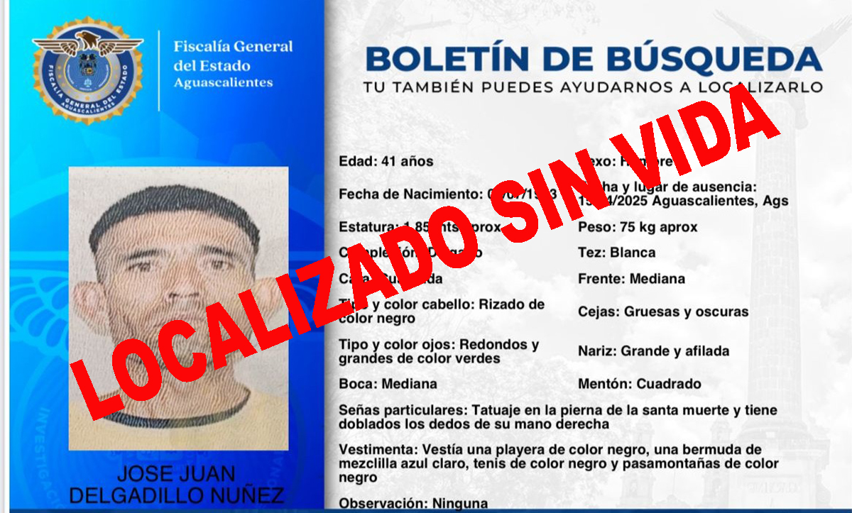 Un hombre que había sido reportado como desaparecido, finalmente fue localizado pero sin vida y sin que por el momento se conozcan las causas reales de la muerte de dicha persona.Se trata de JOSÉ JUAN DELGADILLO NUÑEZ de 41 años de edad, quien hace 15 días fue reportado como d...