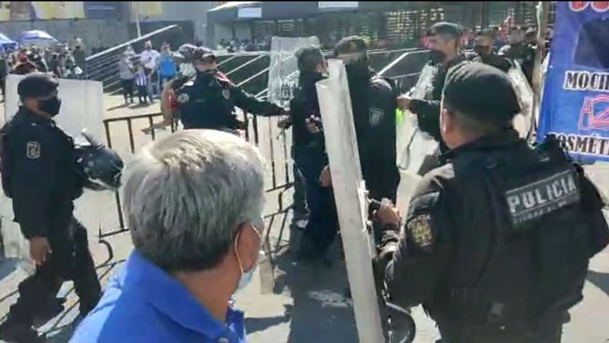 Pelean policías y revendedores en la explanada del Estadio Azteca