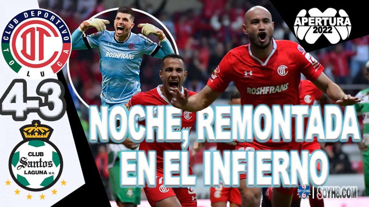 Toluca y Santos entregaron un partidazo en el que ambos equipos sacaron a relucir sus mejores armas, pero con un gol de último minuto que llegó desde los once pasos y cortesía de Volpi, los escarlatas triunfaron 4-3 en la ida que se disputo en casa de los Diablos Rojos.