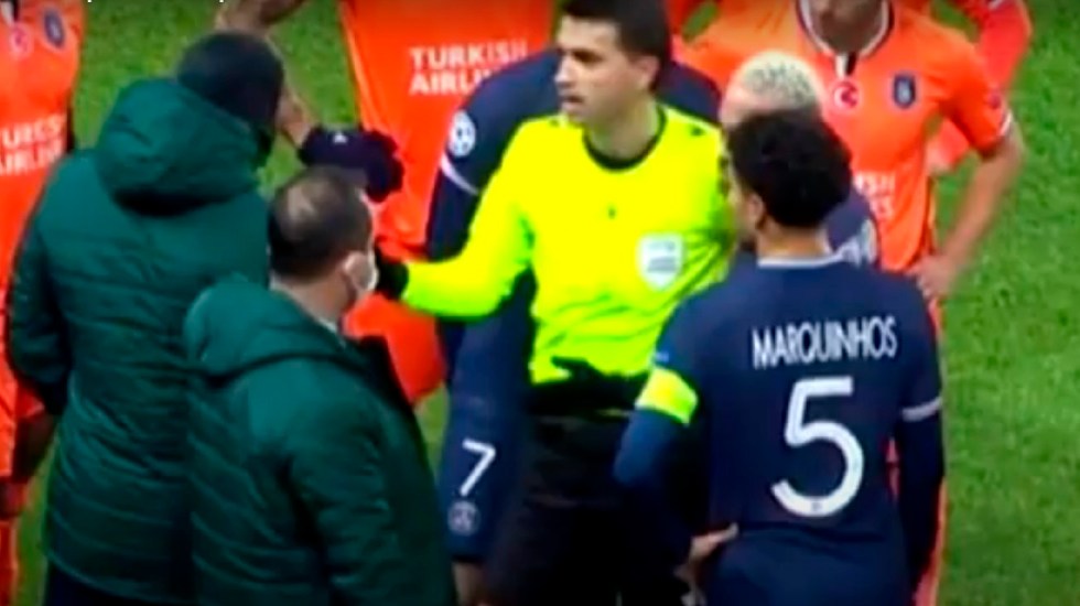 El partido entre el Basaksehir y el Paris Saint-Germain se vio interrumpido luego de que un árbitro llamó “negro” a uno de los jugadores al minuto 16 del partido.