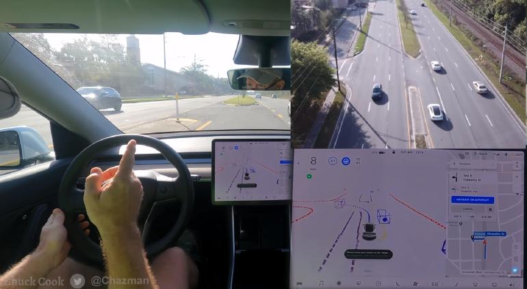 El usuarios de un Tesla Model Y, Chuck Cook, probó la versión del sistema que probó la conducción normal por minutos.
