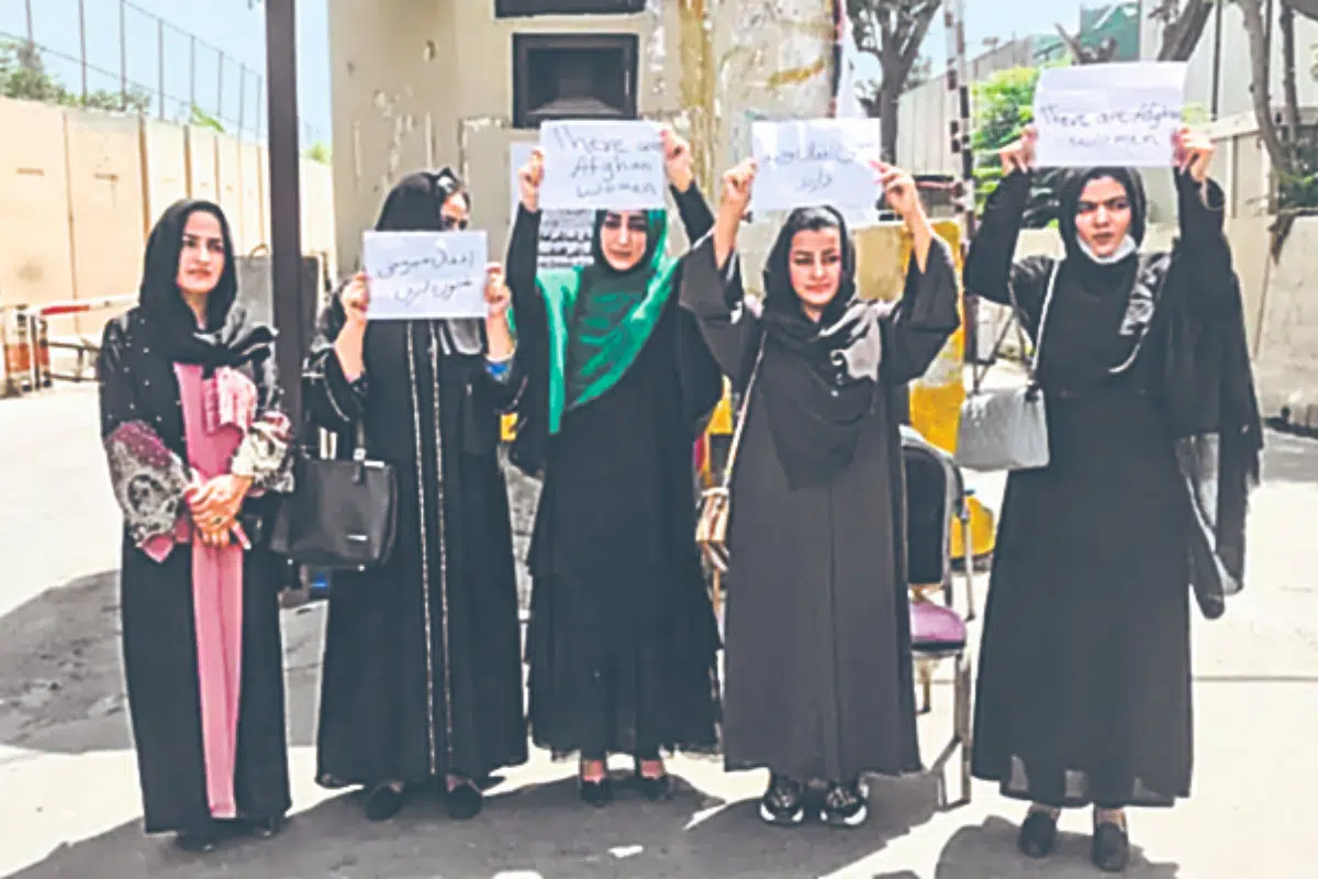 Un grupo de mujeres protesta en calles de Kabul