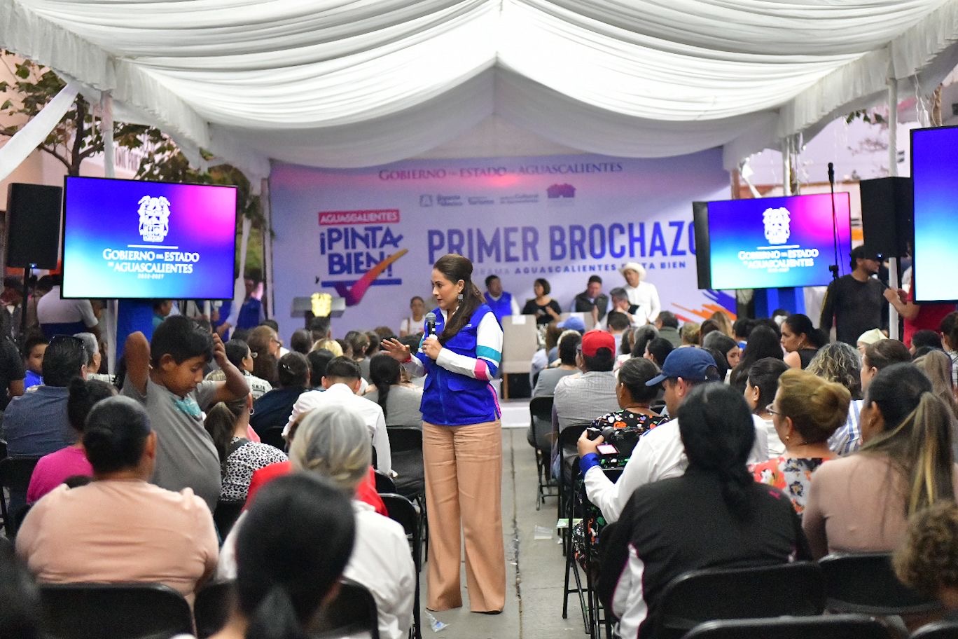 Con brocha en mano, la gobernadora de Aguascalientes, Tere Jiménez, dio inicio al Programa “Aguascalientes Pinta Bien” en el municipio de Pabellón de Arteaga, una estrategia que busca transformar espacios y fortalecer el orgullo comunitario.