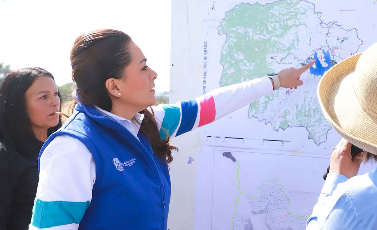La gobernadora de Aguascalientes, Tere Jiménez, visitó el municipio de San José de Gracia, donde supervisó los avances en la modernización del sistema de riego de la presa 50 Aniversario, una obra que permitirá que las y los productores puedan regar sus parcelas con menos agua.“Va...