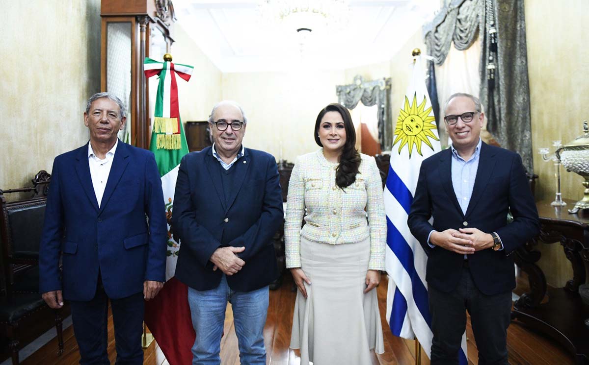 La gobernadora de Aguascalientes, Tere Jiménez, sostuvo un encuentro con el ministro de Agricultura, Ganadería y Pesca del Gobierno de Uruguay, Luis Alfredo Fratti Silveira, y con el embajador de la República de Uruguay en México, Santiago Wins Arnabal, con quienes dialogó sobre el modelo a...