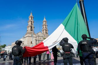 Encabeza Leo Montañez izamiento de bandera por el 450 aniversario de la ciudad