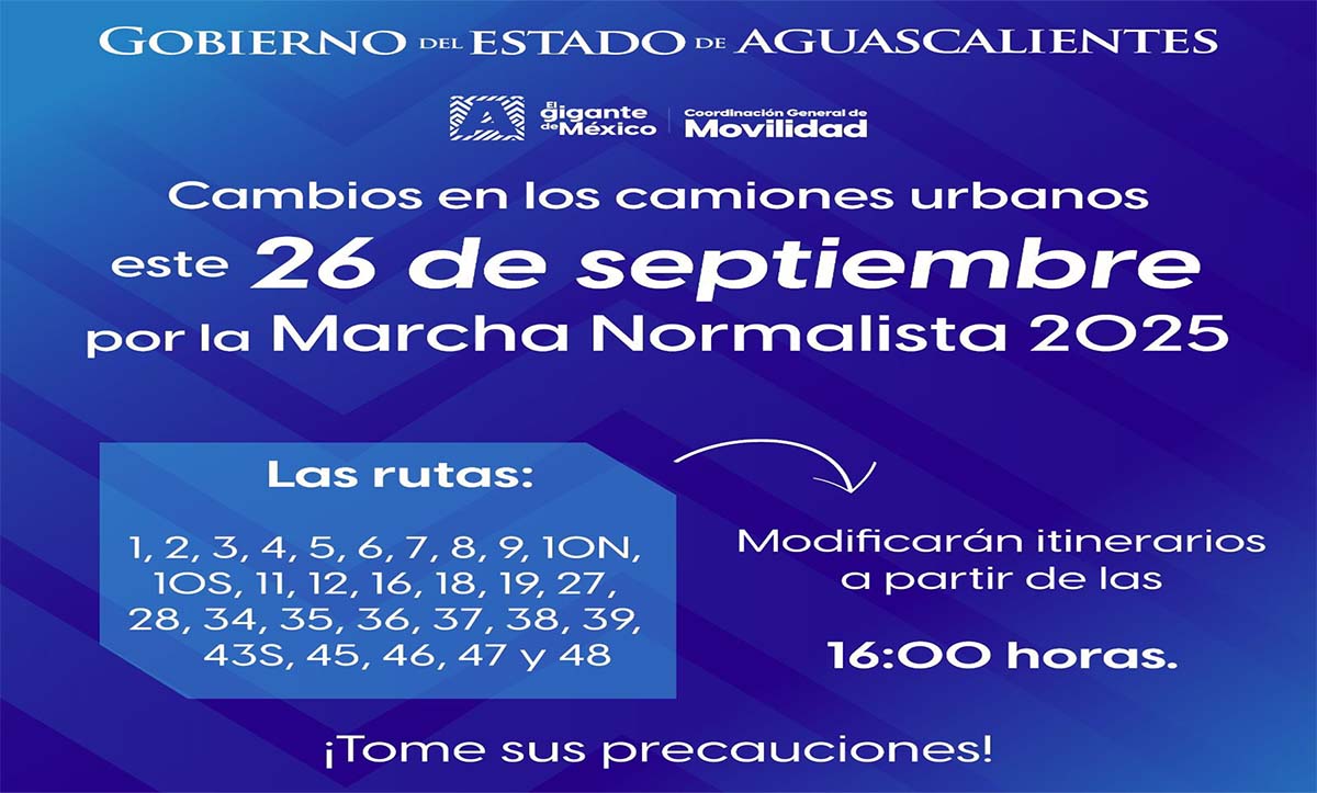 Habrá modificaciones en rutas de camiones urbanos por la Marcha Normalista 2025 en Aguascalientes