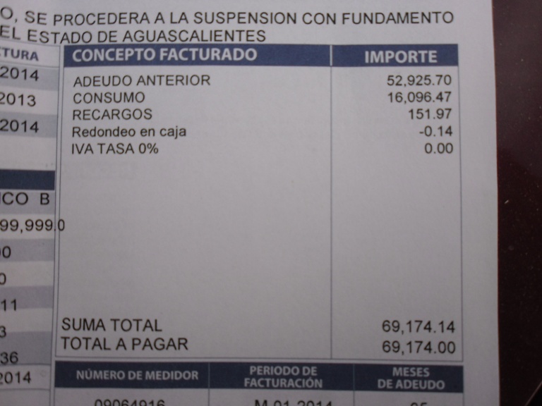 CAASA no podrá emitir recibos de agua por más de 3 mil pesos, para evitar que haya cuentas impagables.