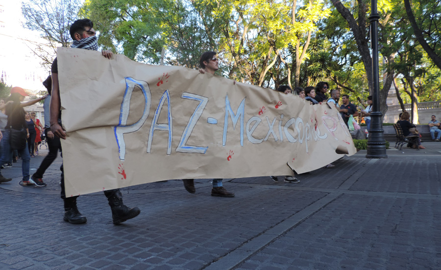 Jóvenes artistas de diferentes disciplinas en Aguascalientes, protagonizaron una marcha silenciosa por calles de la zona centro de la ciudad, para exigir paz en México y concretamente en Oaxaca tras los hechos violentos registrados en los últimos días.