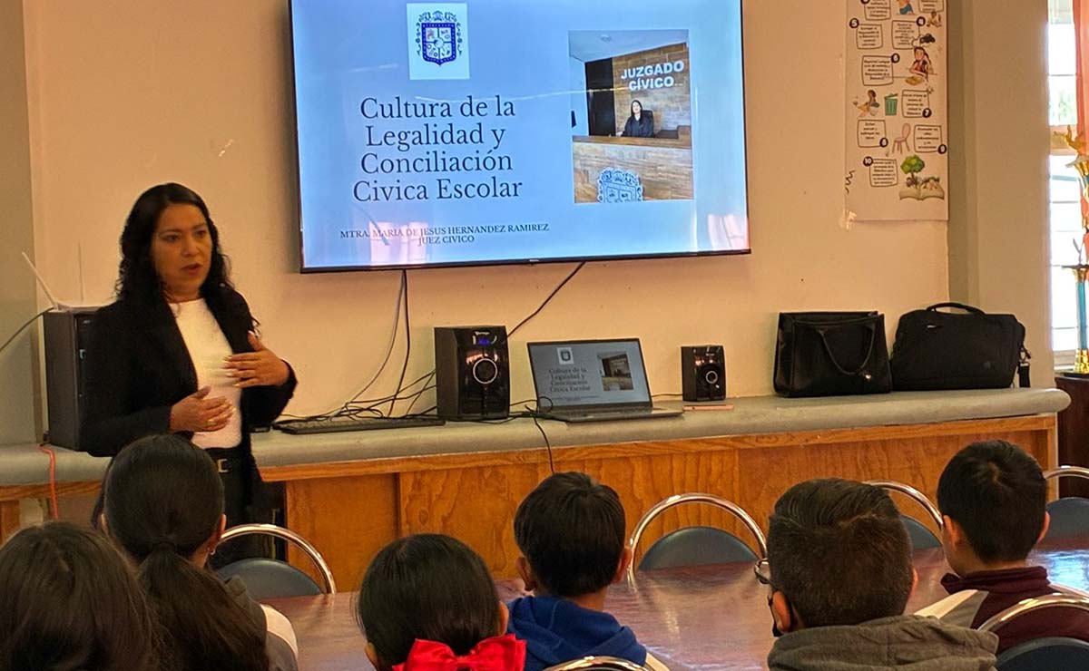Con el objetivo de fortalecer la convivencia armónica y fomentar una cultura de respeto a la legalidad desde temprana edad, personal del área de Justicia Cívica del municipio de Jesús María imparte pláticas de Cultura de la Legalidad y Conciliación Cívica Escolar a alumnas y alumnos de l...