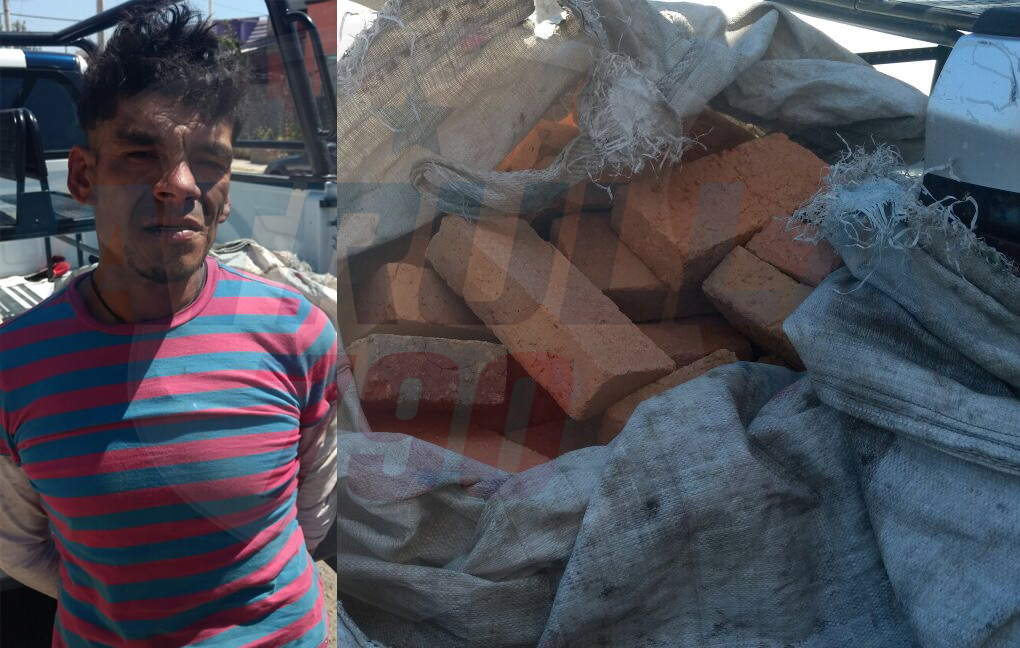 Policías Municipales de Jesús María lograron la detención de un sujeto que estaba saqueando una finca en proceso de construcción y de la cual se apoderó de 60 ladrillos que llevaba acomodados en una carretilla.