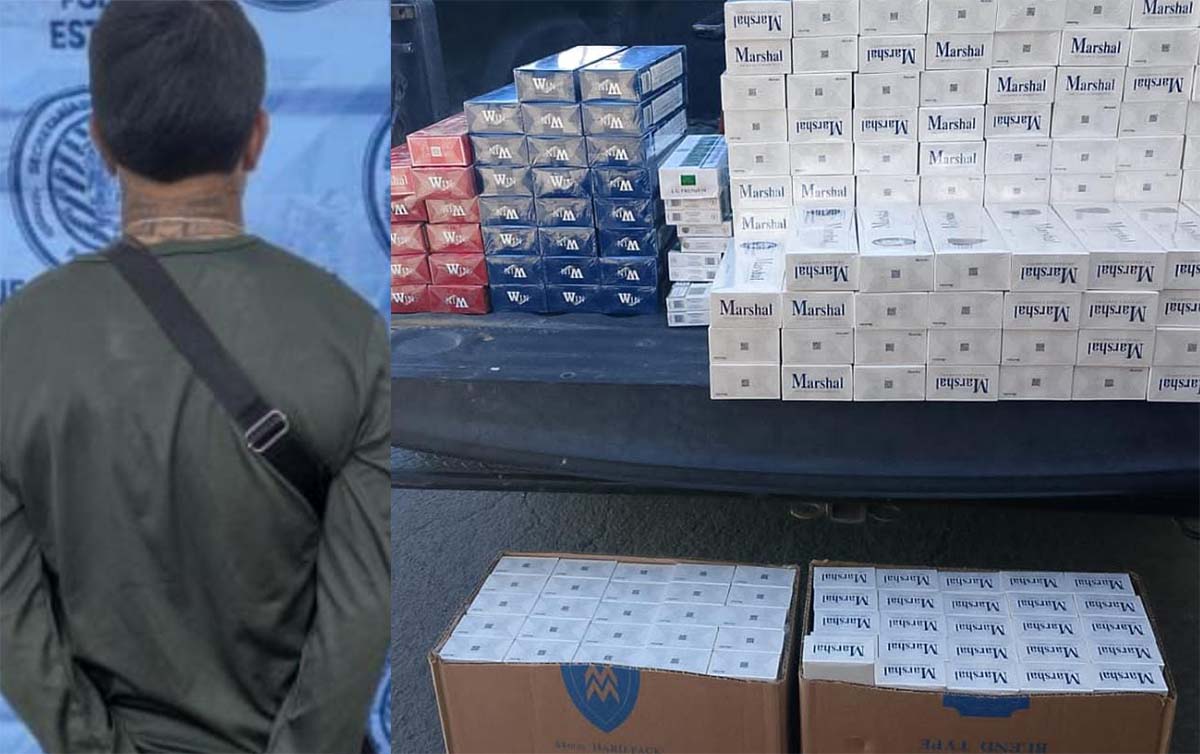 Estatales detienen a sujeto que cargaba con 2,500 cajetillas de cigarros de contrabando